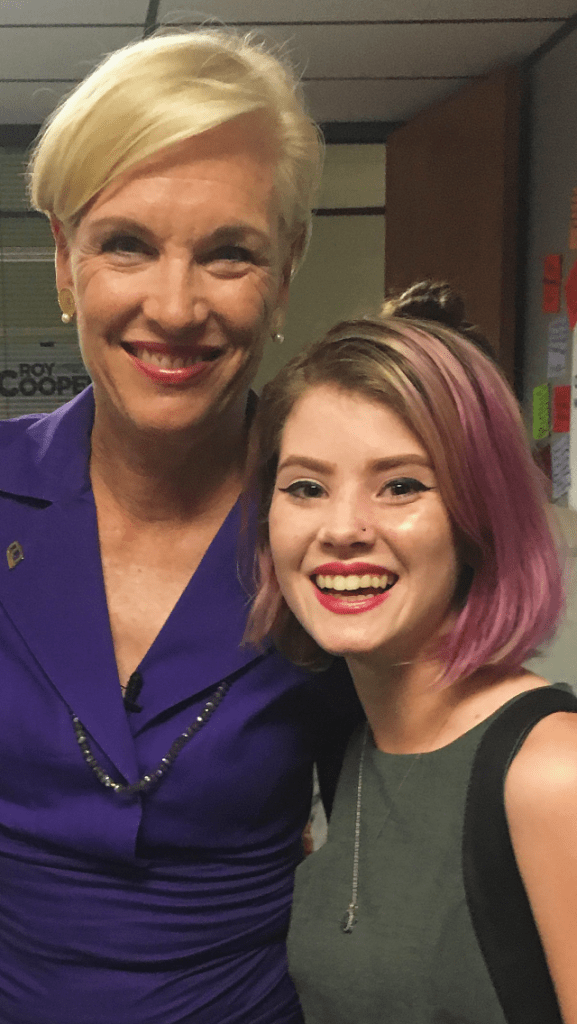 Maggie Bowyer standing with Cecile Richards during an event at the DNC.